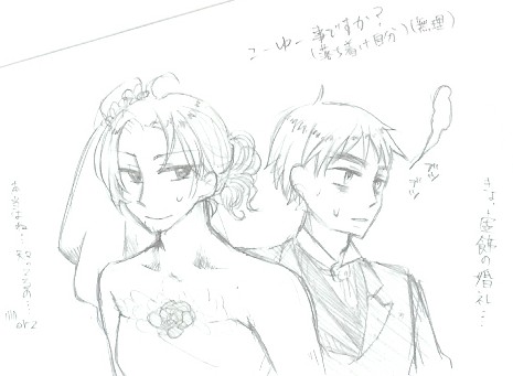 ヴァレンティーノの一週間・・<いちおう>ドイツが最/終兵/器彼/女一話のシュウジみたいで萌えました。「付き合うってこんな感じで良いのか・・?」的な。笑 ドイツはやってることはあまり変わらないのに(肩に手回すのはともかくタイ整えたげたりとか)微妙ぎこちない気の遣いっぷりで見事にイタリアをビビらせている(´∀`*)